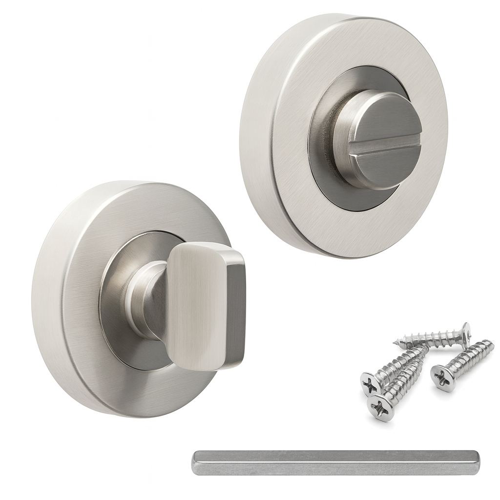 This Round Bathroom Turn & Release Set (54 mm) is the perfect solution for toilet and bathroom doors. Designed with a thumb turn for internal locking and an emergency release for outside access, it ensures both safety and convenience. The polished chrome finish complements a wide range of door handles, while the 54 mm round rose design provides a neat, modern look. Compatible with most bathroom locks, this set includes the thumb turn, release, spindle, and all necessary fixings for easy installation. Ideal for residential or commercial use, it delivers both style and practicality.